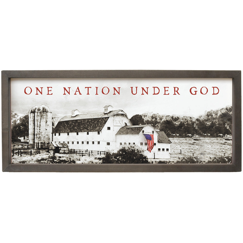 This piece is composed of a pine wood frame and an MDF insert. The depth of the frame also allows for tabletop display or a wall hanging application. Dimensions 10” x 24” x 1.5”. Product weight – 64 oz. Proudly designed, printed, and made in the USA by Sincere Surroundings.