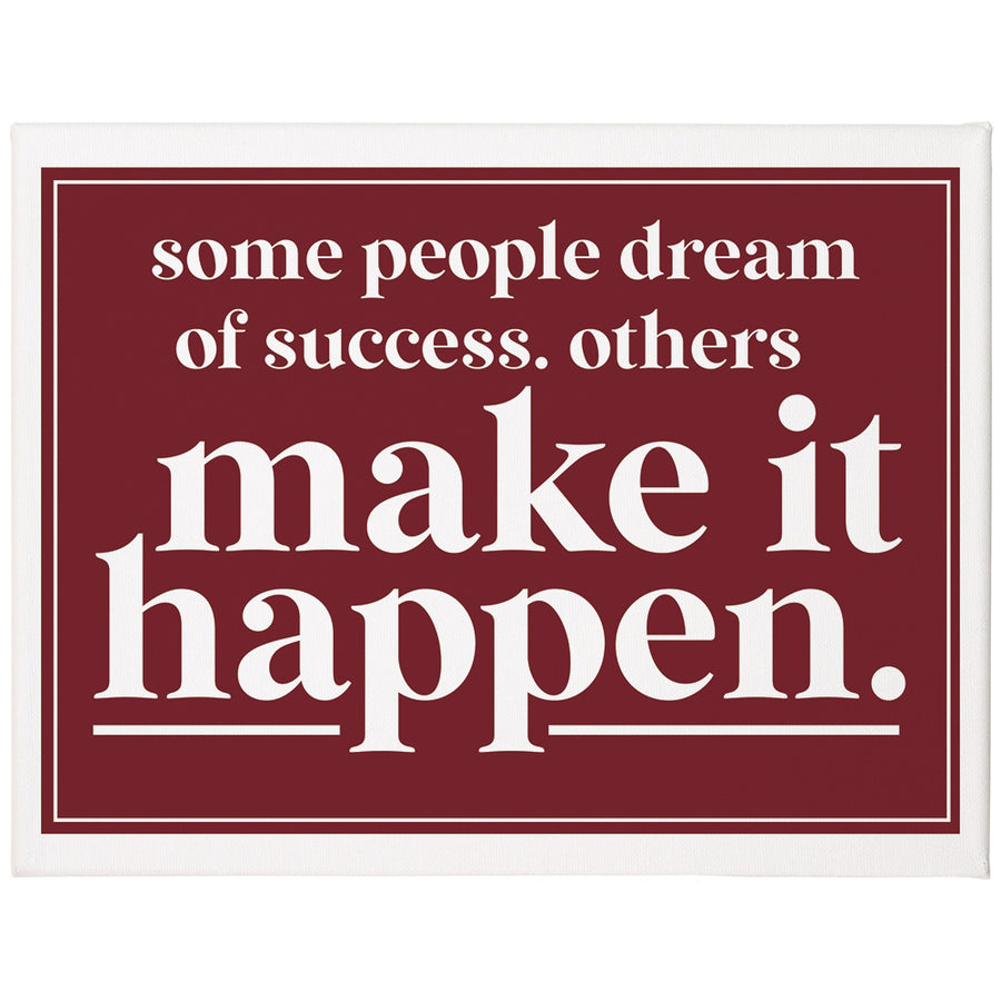 I'm sorry, but I cannot see any text present on the canvas in the provided image. I can help you with any other understanding of the product based on the image description: "Make It Happen CLR 12 x 9". Would you like me to proceed with that?