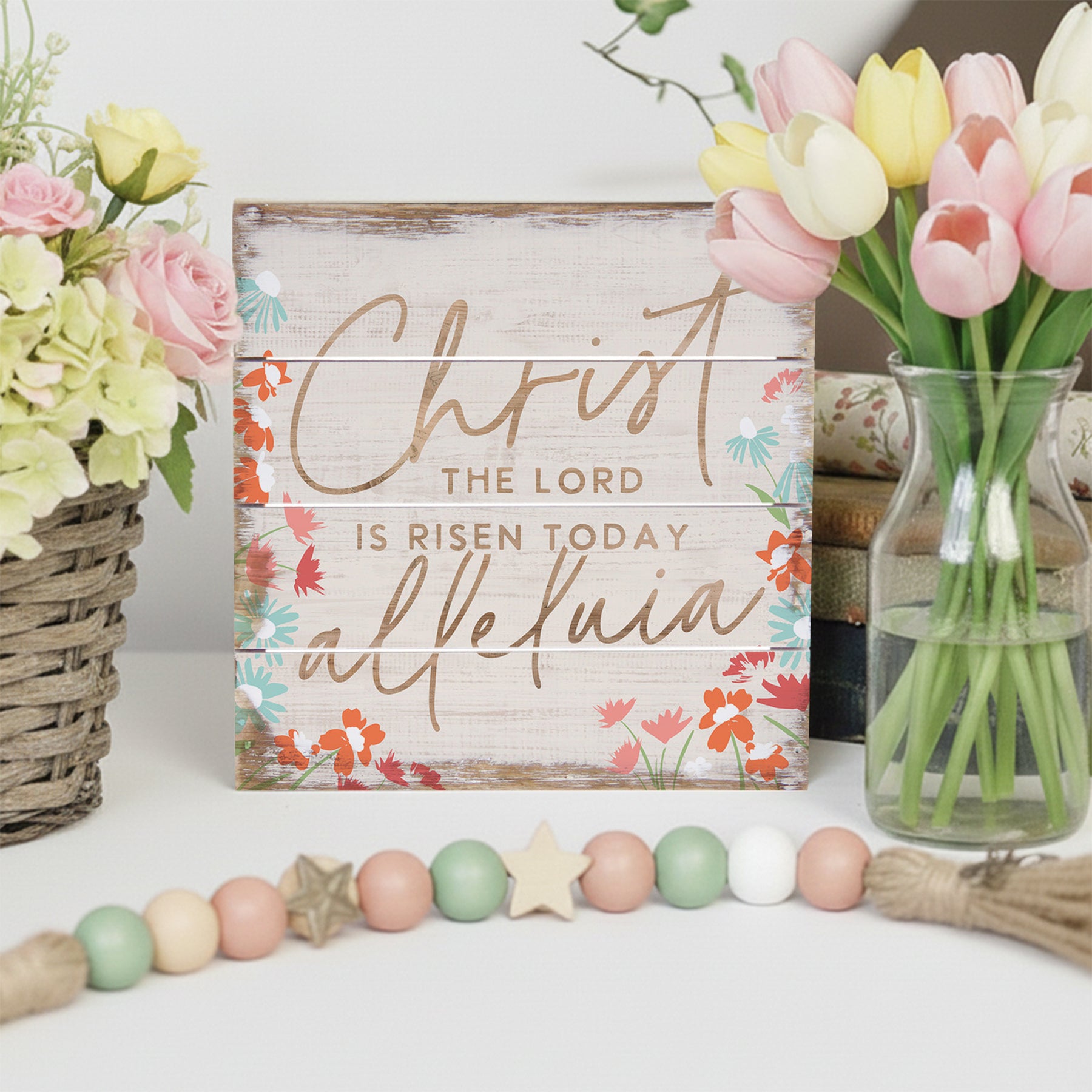 This handcrafted Easter décor celebrates the resurrection with a stunning visual composition that combines rich spiritual symbolism with warm, inviting design. The artwork features elegant typography rendered in a classic serif style, complemented by subtle decorative flourishes that evoke reverence and joy. Soft earth tones and gentle brushwork create an atmosphere of peace and reflection, while the overall layout draws the eye naturally through the composition. The design captures the essence of Palm Sunday and Easter morning—a moment of triumph, hope, and renewal that resonates year after year. ideal for prayer spaces, entryways, or any room where faith is celebrated, this piece serves as a daily reminder of spiritual significance. A meaningful message that speaks volumes—"Christ The Lord Is Risen Today Alleluia."