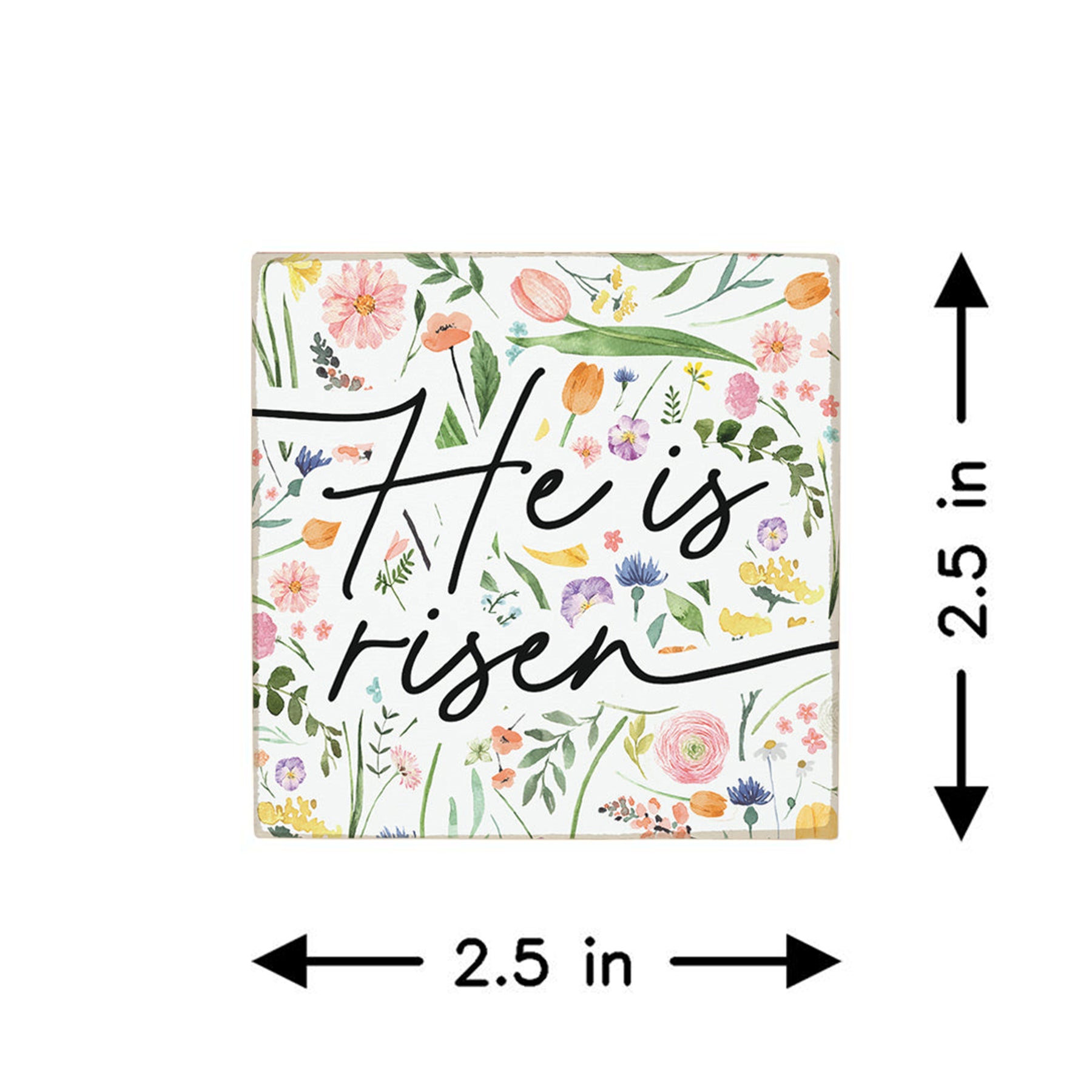 A vibrant celebration of faith and renewal blooms across this charming square magnet, where delicate florals in soft pastels—blush pinks, cream whites, and gentle greens—dance around a bold, centered message rendered in elegant serif typography. The watercolor-inspired floral arrangement creates a sense of hope and spiritual awakening, with botanical details that feel both timeless and fresh. Soft brushwork and layered color washes give the design an artistic, hand-painted quality, while the composition draws the eye naturally to the heart of the piece. The overall mood is one of joy, resurrection, and the promise of new beginnings—ideal for Easter celebrations and year-round faith-centered décor. A meaningful message that shares "He Is Risen."