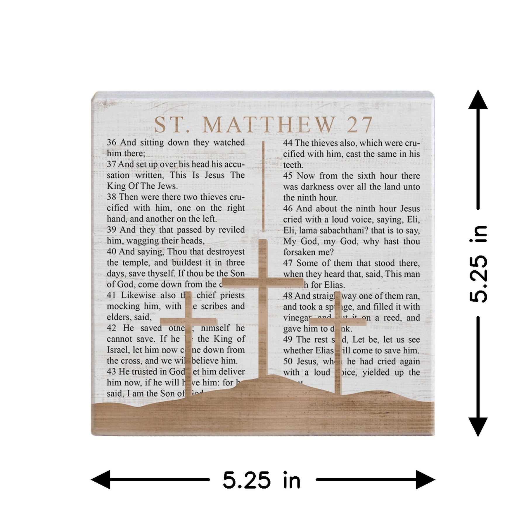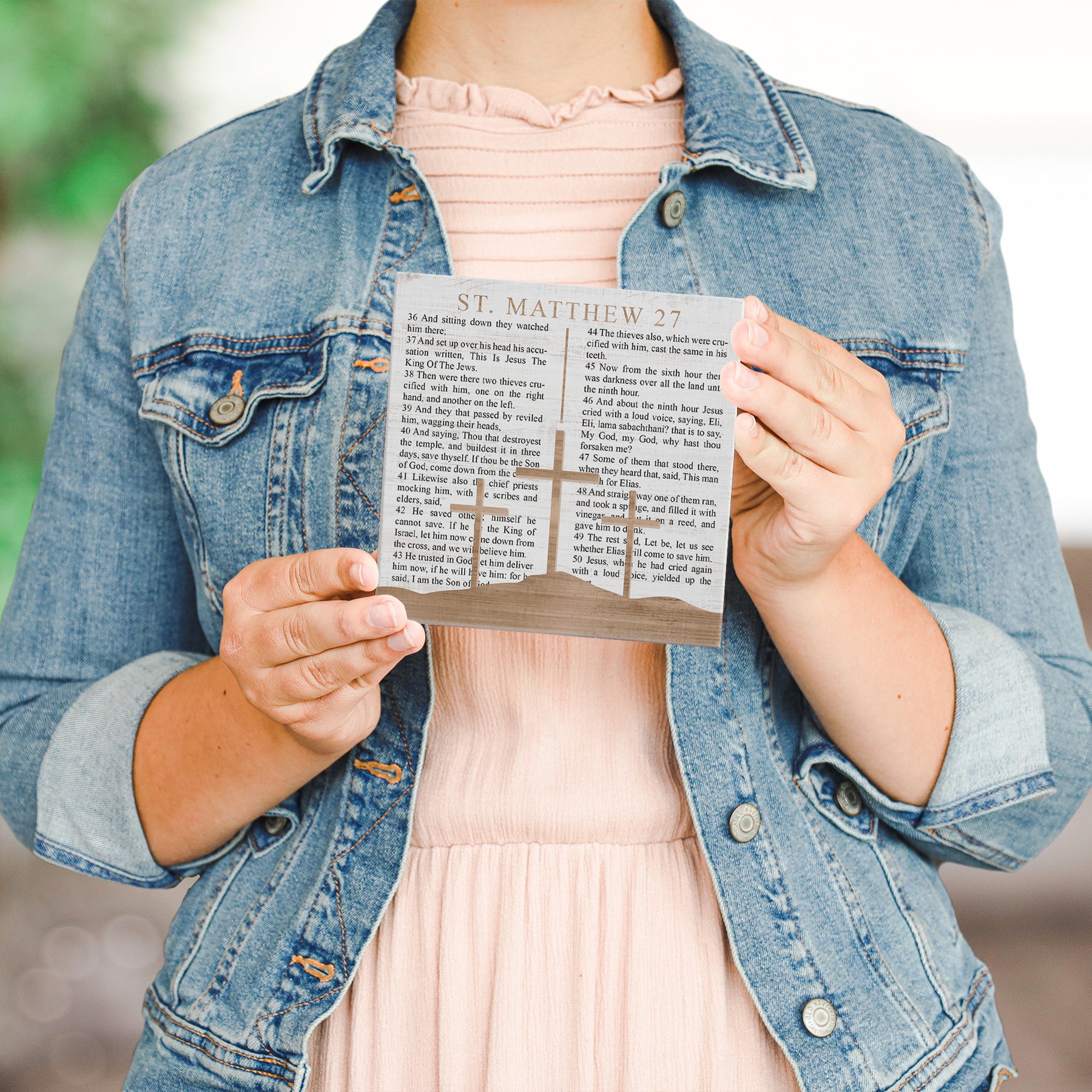 This reverent wooden sign features the Passion narrative from the Gospel of Matthew, presenting one of Christianity's most profound and sacred passages in elegant, contemplative typography. The text is rendered in a refined serif font across the natural pine surface, creating a sense of spiritual weight and historical gravitas. The design invites deep reflection on Christ's crucifixion and resurrection—a cornerstone of Christian faith. The composition balances readability with reverence, allowing the Scripture to speak clearly while the warm wood tone grounds the piece in authenticity and timelessness. This is a meaningful reminder that shares the Passion account from Matthew 27, offering a visual anchor for prayer, study, and spiritual contemplation.