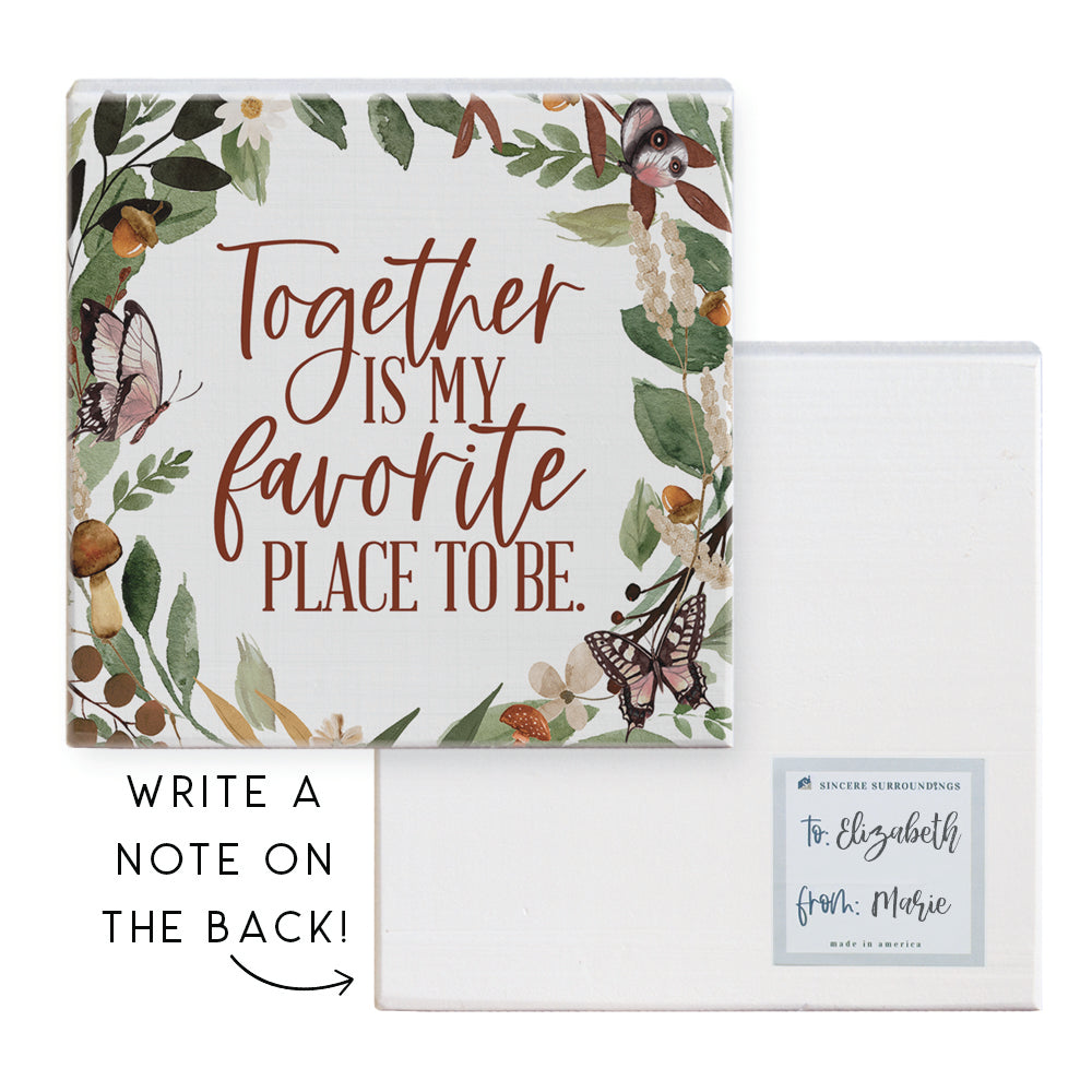 Hand crafted from high-end pine wood, and on-trend design, this Gift-A-Block is the perfect gift that doubles as a card. The sign comes with a to/from tag on back and space for your to write you message to the receiver. Dimensions 5.25 x 5.25 x .75. Product weight 5 oz. Proudly designed, printed, and made in the USA by Sincere Surroundings.