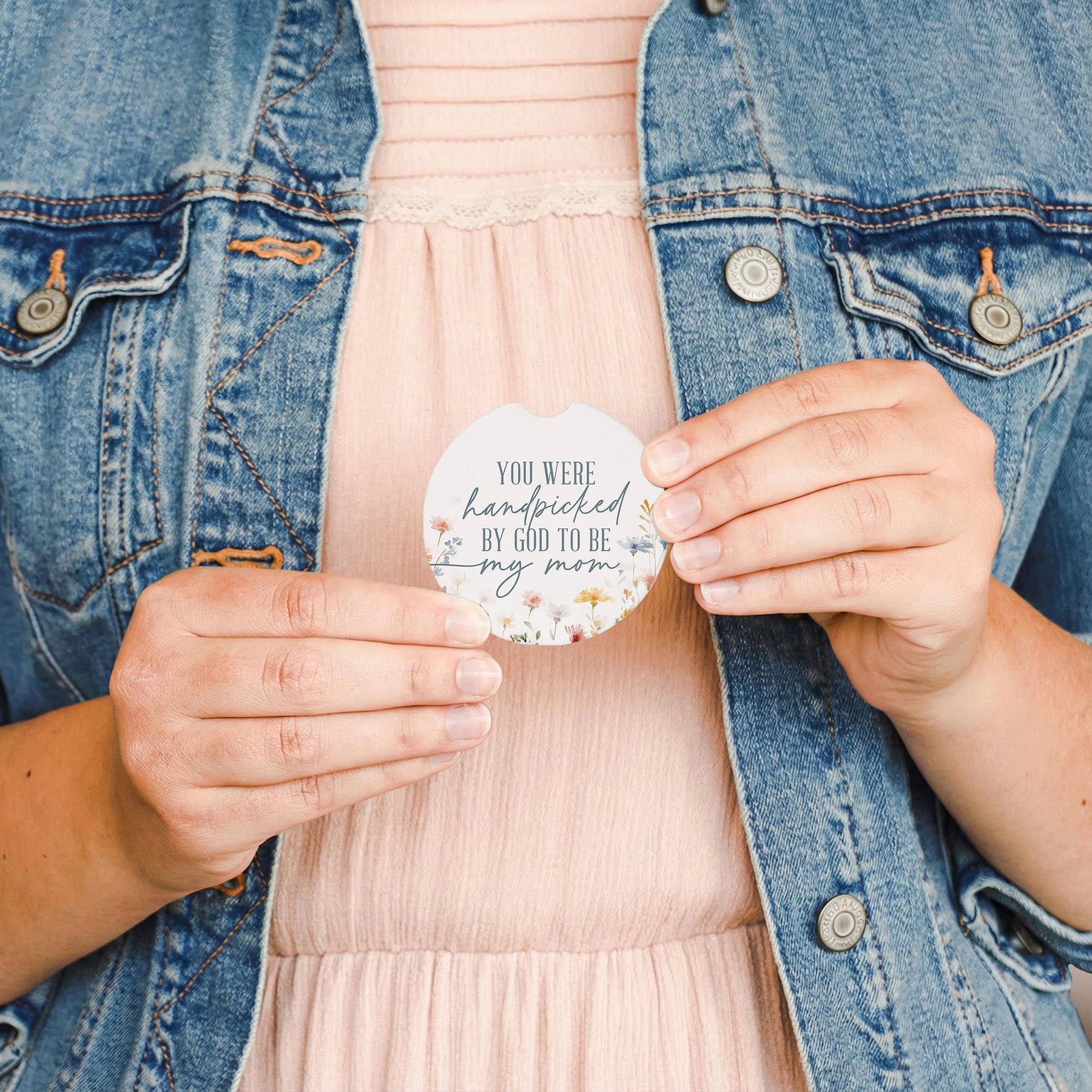 | A tender tribute rendered in soft, watercolor-inspired illustration, this coaster design celebrates the profound bond between mother and child. Warm peachy and cream tones blend gently across the ceramic surface, creating an intimate, heartfelt atmosphere that feels both timeless and contemporary. The composition centers on graceful, hand-lettered typography in a flowing script that conveys deep affection and spiritual gratitude. Delicate floral accents and subtle brushwork frame the message, inviting quiet reflection on the blessing of motherhood. This heartfelt reminder shares "You Were Handpicked By God To Be My Mom". Made from absorbent ceramic with a smooth, printed finish and a convenient finger notch for easy removal. Measures 2.75" x 2.75" x 0.25", weighs 0.16 lbs, and is designed and printed in the USA. These coasters are perfect for the car's cup holder, keeping your vehicle clean and dry while adding a personal, meaningful touch to your daily commute. The compact size fits standard vehicle cup holders, and the absorbent ceramic prevents condensation from damaging your car's interior. Display this heartfelt message where Mom will see it every time she drives, turning an everyday moment into a reminder of love and appreciation. This is a beautiful Mother's Day gift or year-round present for the mom who deserves to know how truly special and chosen she is. It's also a thoughtful choice for aunts, stepmoms, or maternal figures who've made a profound difference in your life. Whether gifting for Mother's Day, a birthday, or simply to say 'I love you,' these ceramic car coasters combine practicality with heartfelt sentiment, making them a gift that's both useful and deeply meaningful. |