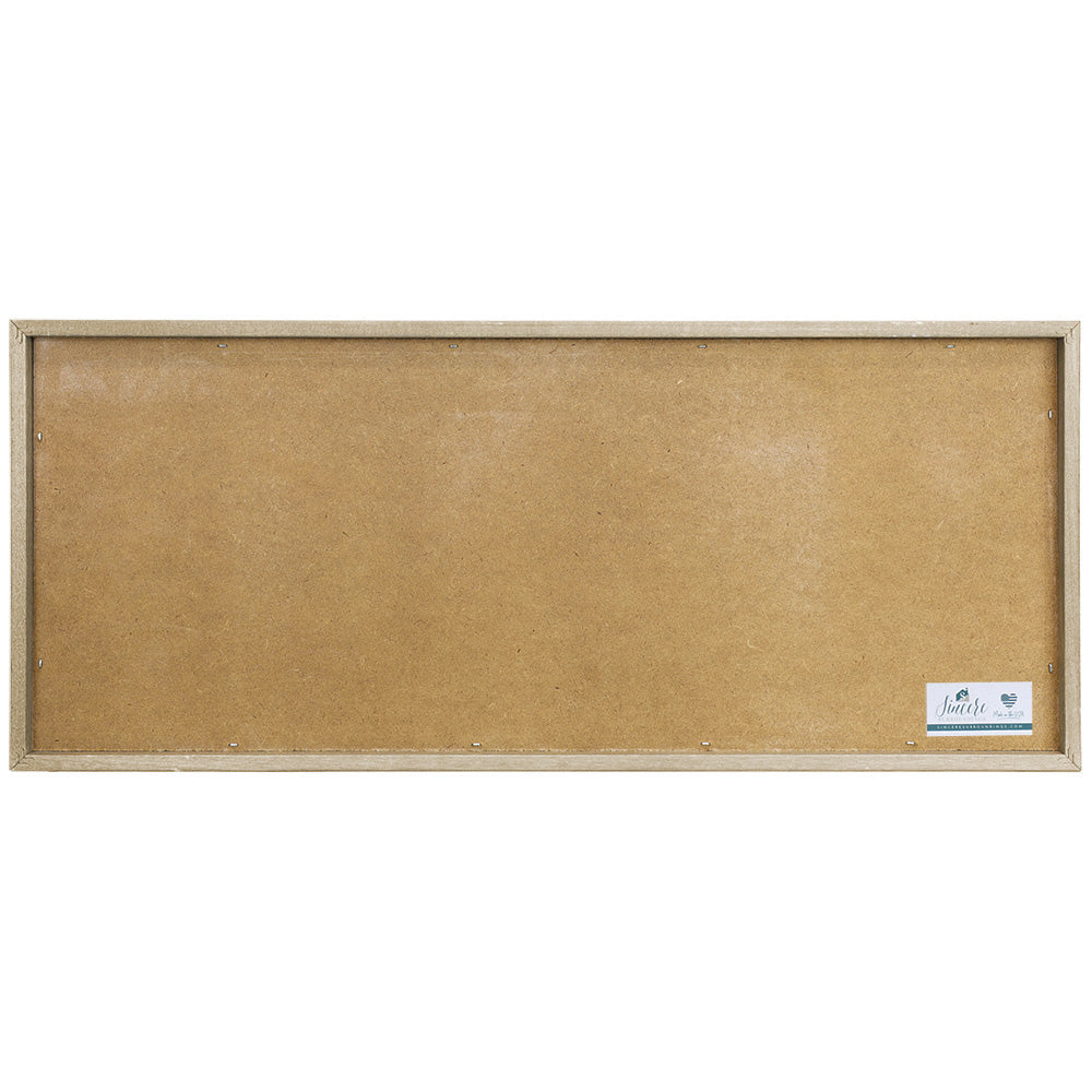 This piece is composed of a pine wood frame and an MDF insert. The depth of the frame also allows for tabletop display or a wall hanging application. Dimensions 10 x 24 x 1.5. Product weight 64 oz. Proudly designed, printed, and made in the USA by Sincere Surroundings.