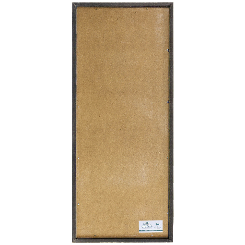 This piece is composed of a pine wood frame and an MDF insert. The depth of the frame also allows for tabletop display or a wall hanging application. Dimensions 10” x 24” x 1.5”. Product weight – 64 oz. Proudly designed, printed, and made in the USA by Sincere Surroundings.