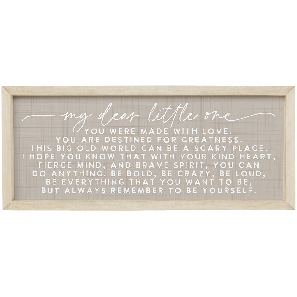 This piece is composed of a pine wood frame and an MDF insert. The depth of the frame also allows for tabletop display or a wall hanging application. Dimensions 10” x 24” x 1.5”. Product weight – 64 oz. Proudly designed, printed, and made in the USA by Sincere Surroundings.