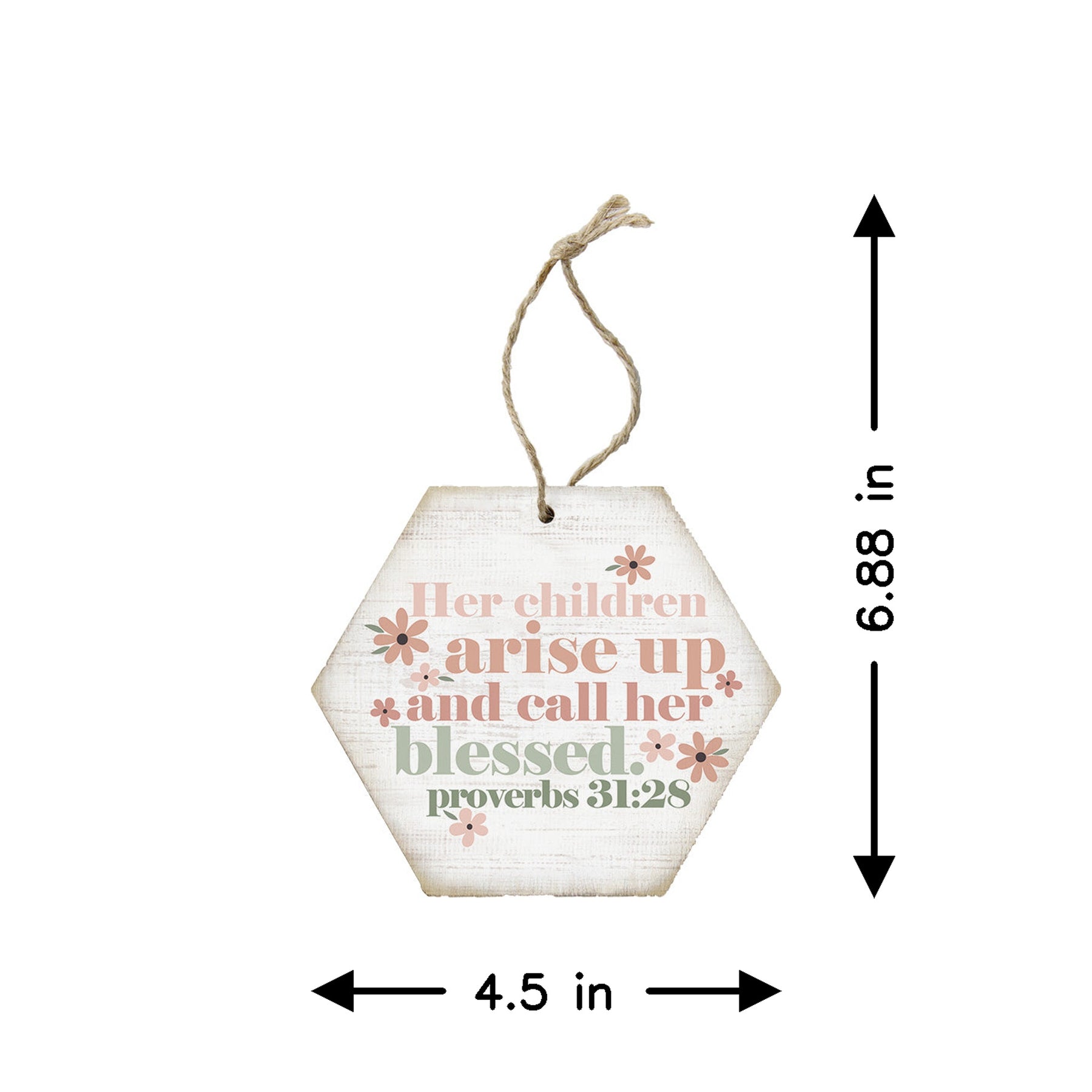 This hexagonal ornament displays beautifully on a shelf, mantel, desk, or hanging from a wall as year-round décor. The compact size makes it ideal for creating a gallery wall of meaningful pieces or displaying in a bedroom, nursery, office, or prayer space where daily reminders of faith and motherhood are cherished.