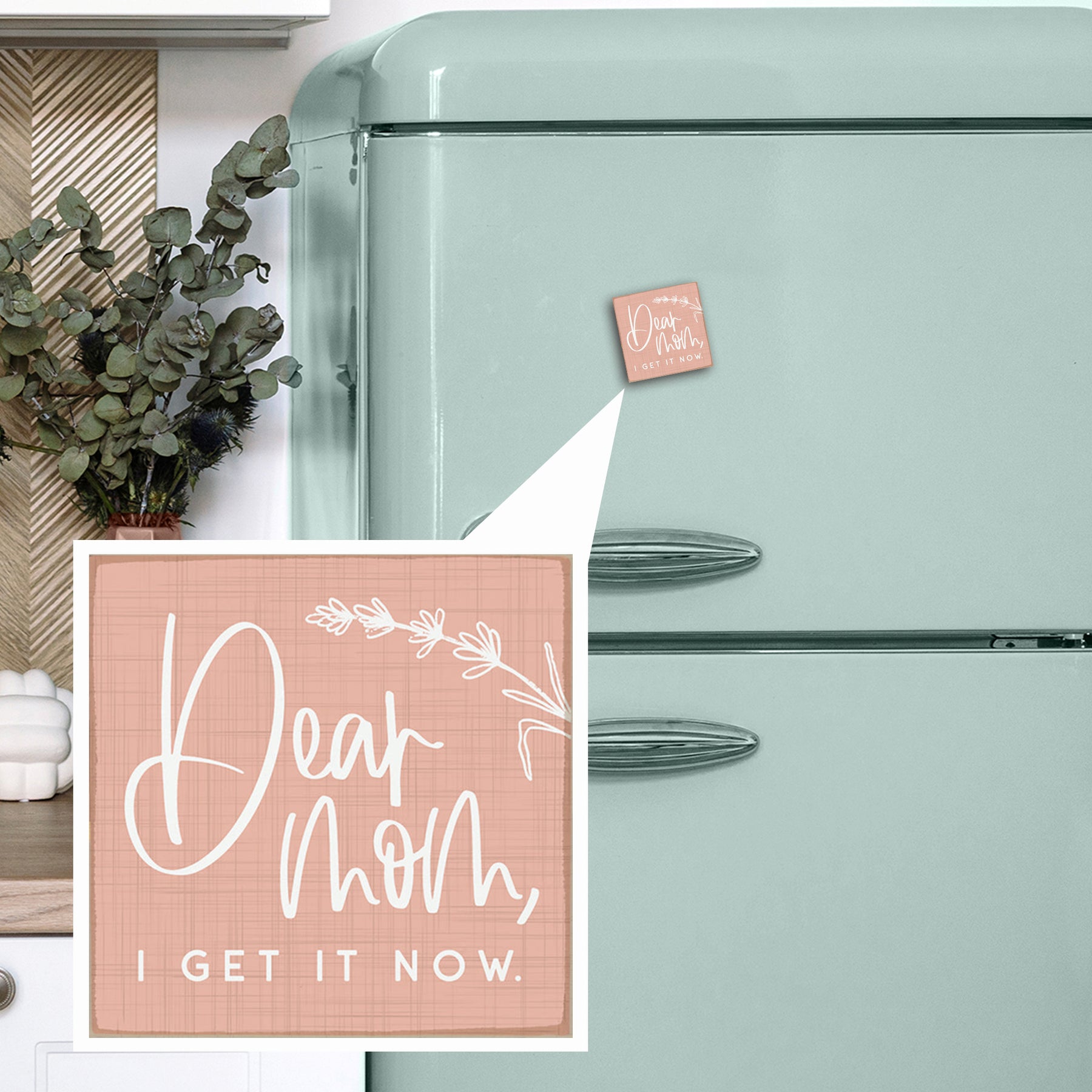 This charming square magnet captures a moment of profound maternal understanding with its warm, heartfelt design. The artwork features clean, modern typography paired with a soft, natural wood aesthetic that celebrates the universal experience of growing up and finally grasping what your mother has always known. The composition balances simplicity with emotional depth, using neutral tones and thoughtful lettering to convey recognition, gratitude, and the quiet wisdom that comes with age. The piece invites reflection on the sacrifices, patience, and love mothers give freely—and the realization that dawns when we become old enough to truly appreciate it. A meaningful message that speaks volumes — "Dear Mom, I Get It Now."