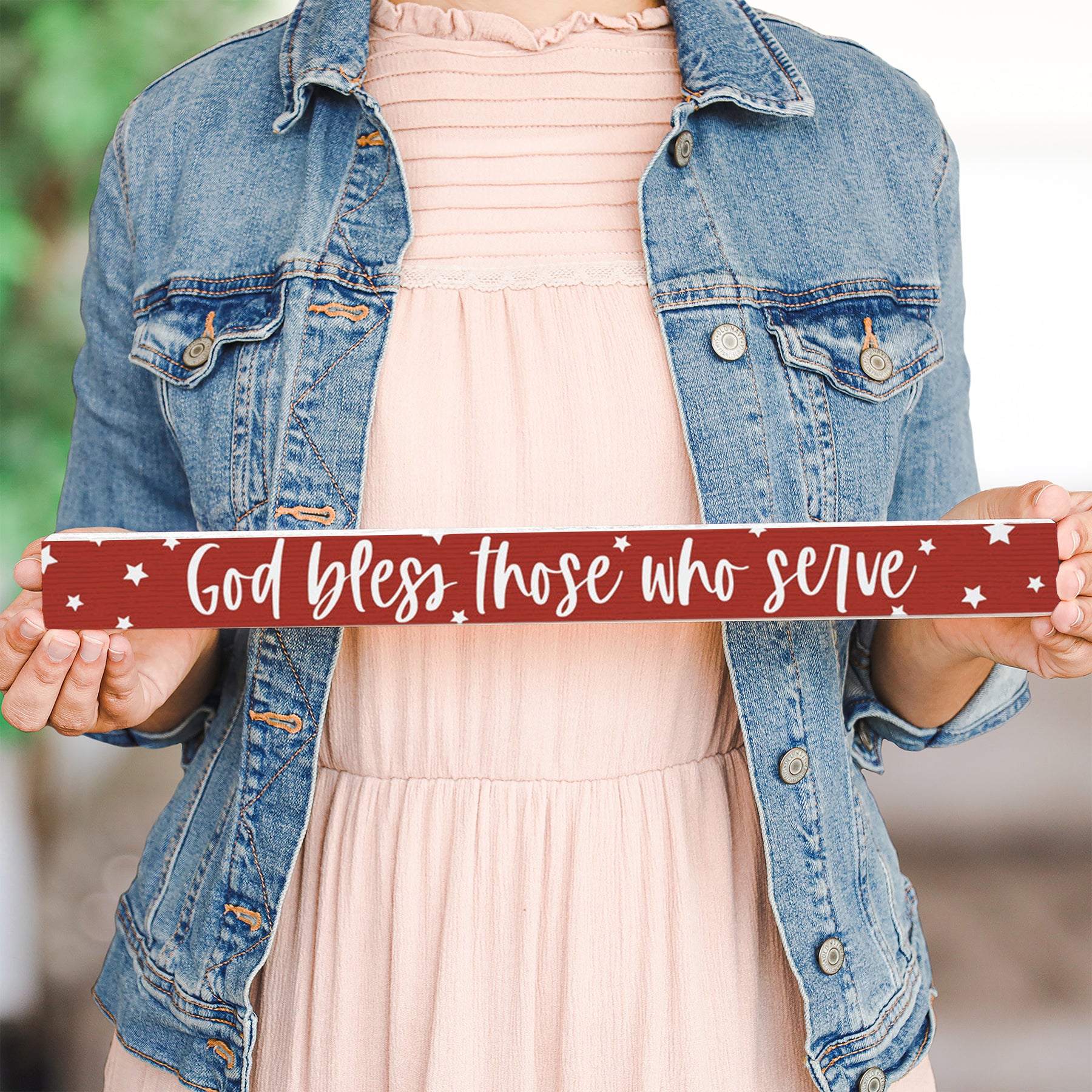 This sign is designed for easy display as a shelf sitter or wall-mounted piece. Its slim profile and lightweight construction make it ideal for positioning on a bookshelf, desk, nightstand, or accent wall in any room of the home. The natural wood finish complements both traditional and contemporary décor, making it a versatile addition to military-inspired, patriotic, or faith-centered spaces.
