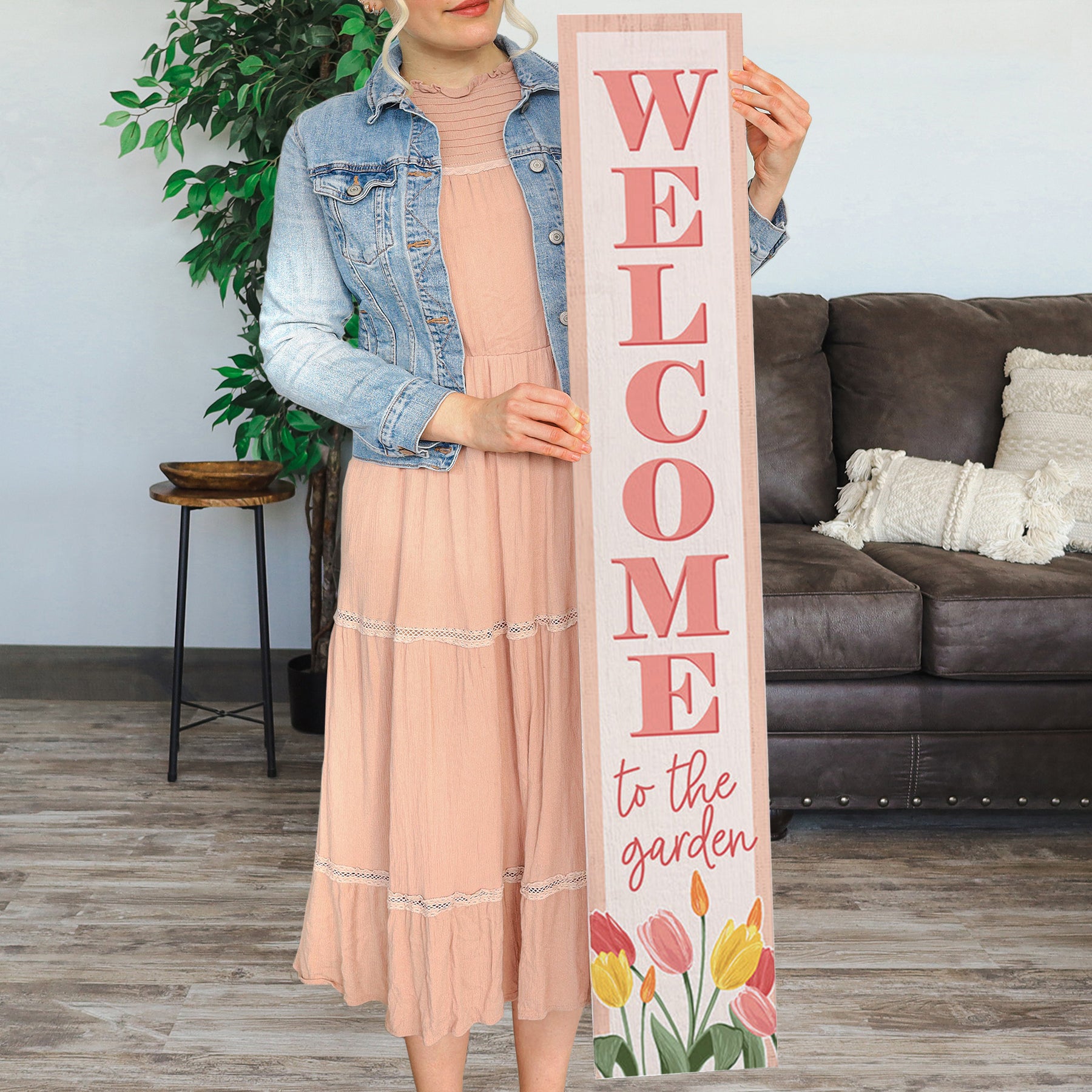 This porch board is designed to hang on an outdoor wall, fence, or garden gate using the convenient twine handle on the back. It's ideal for greeting guests at the entrance, adorning a covered porch, or displaying in a garden room or sunroom where it celebrates the beauty of spring and nature year-round.