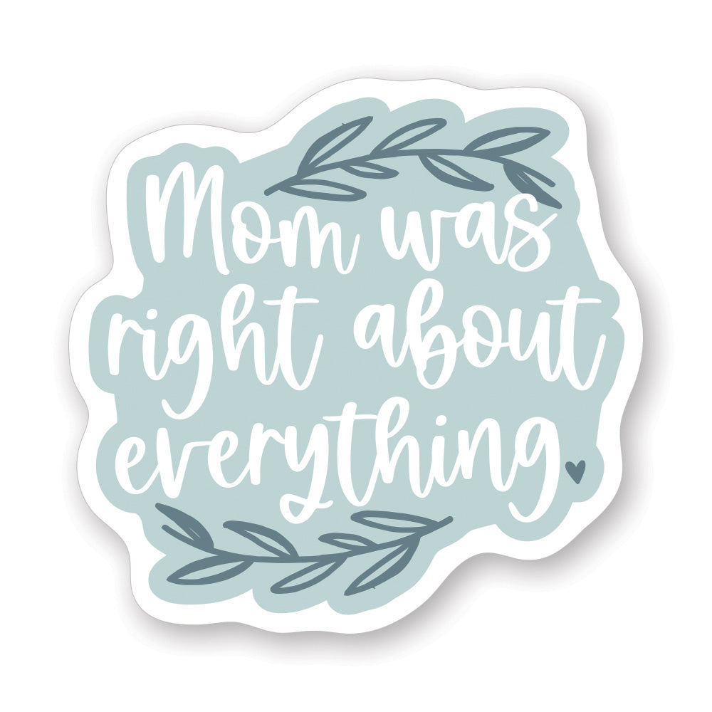 A playful design celebrates the timeless wisdom of mothers everywhere, rendered in bold, confident lettering that commands attention. The artwork features a clean, modern aesthetic with strong typography that radiates both humor and truth—a lighthearted nod to those moments when Mom's advice turns out to be exactly right. The composition balances wit with warmth, creating a design that feels both contemporary and enduring. Framed by crisp lines and a cheerful color palette, this sticker captures the universal experience of maternal foresight with a knowing smile. A playful message that shares "Mom Was Right About Everything."