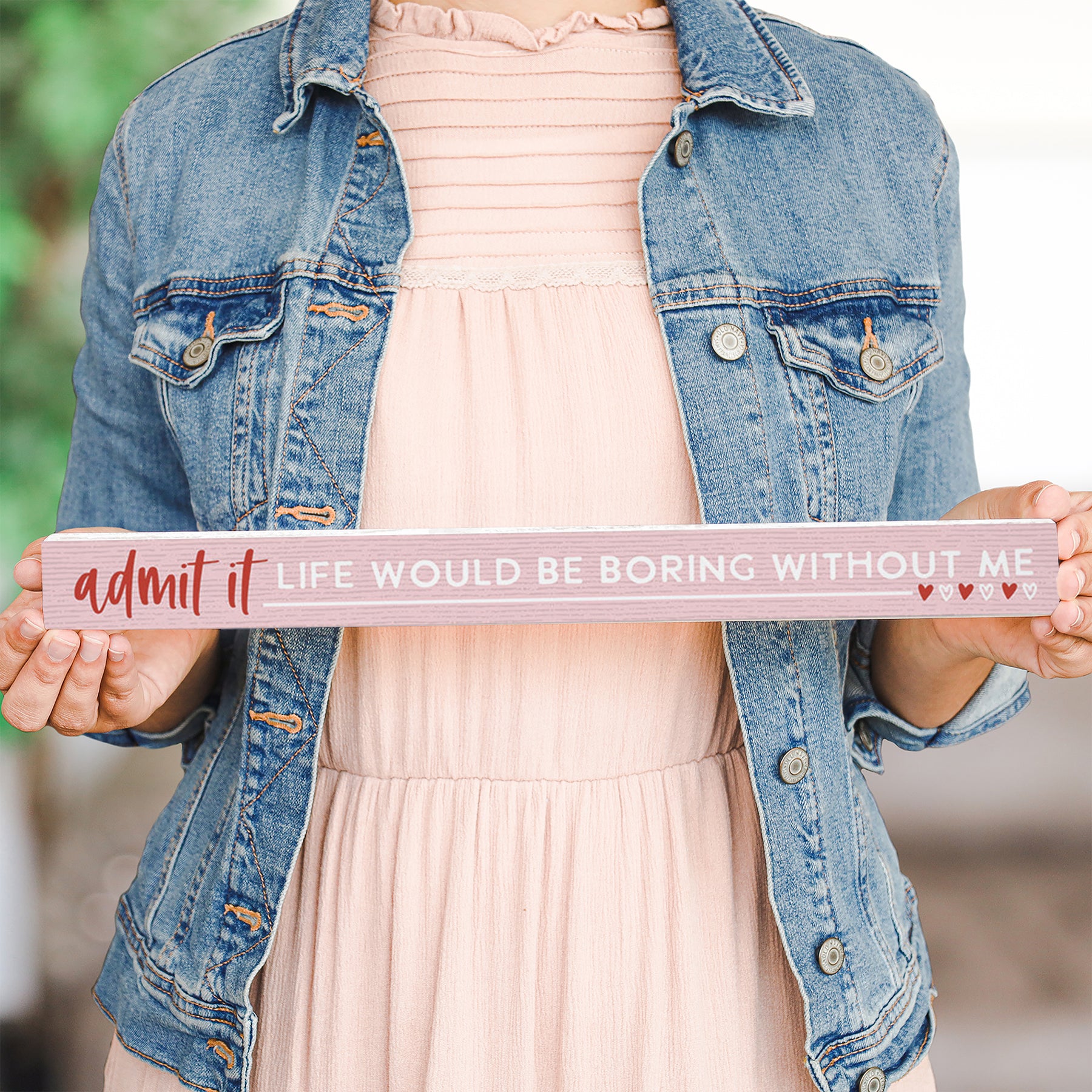 This charming wooden sign celebrates the playful confidence of someone who brings joy and excitement to every room they enter. Hand-lettered typography in a bold, modern style dominates the composition, with warm wood tones and crisp white contrast creating an inviting, lighthearted aesthetic. The design radiates humor and self-assured charm—ideal for anyone with a witty personality who doesn’t take themselves too seriously. The message is rendered in friendly, expressive lettering that commands attention while maintaining a warm, approachable feel. A playful message that shares “Admit It Life Would Be Boring Without Me.”