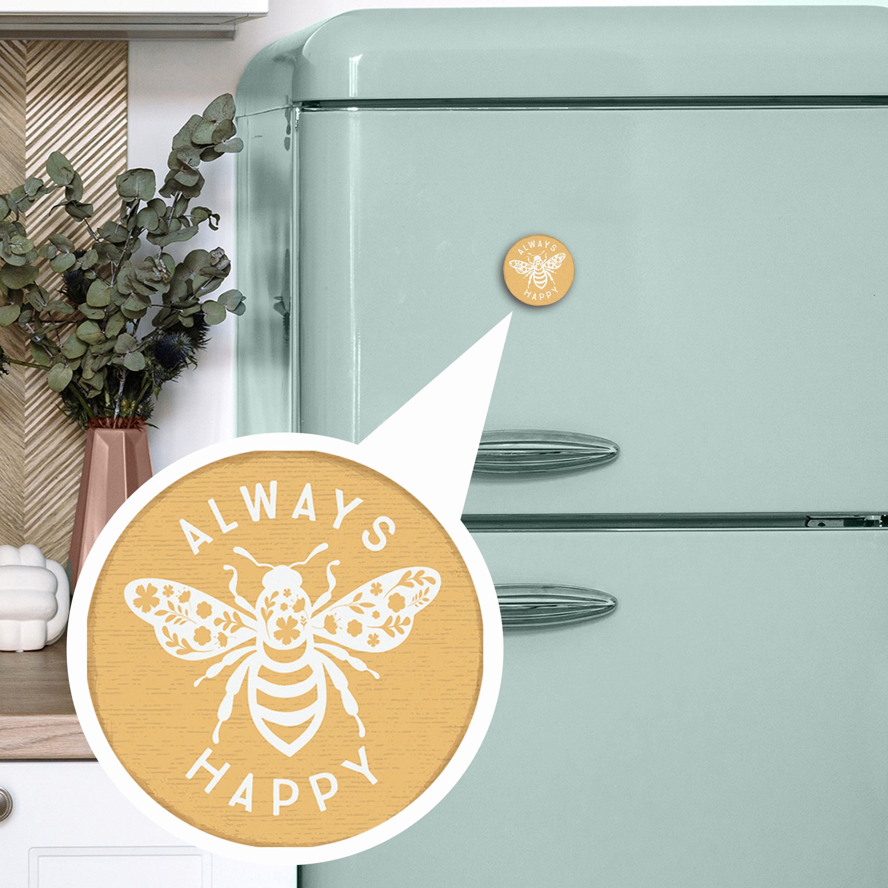 Display this cheerful magnet on your refrigerator, filing cabinet, or any metal surface where it serves as a daily reminder to embrace positivity. It's the perfect size for kitchen décor, office spaces, or anywhere that could use a little extra encouragement and charm.