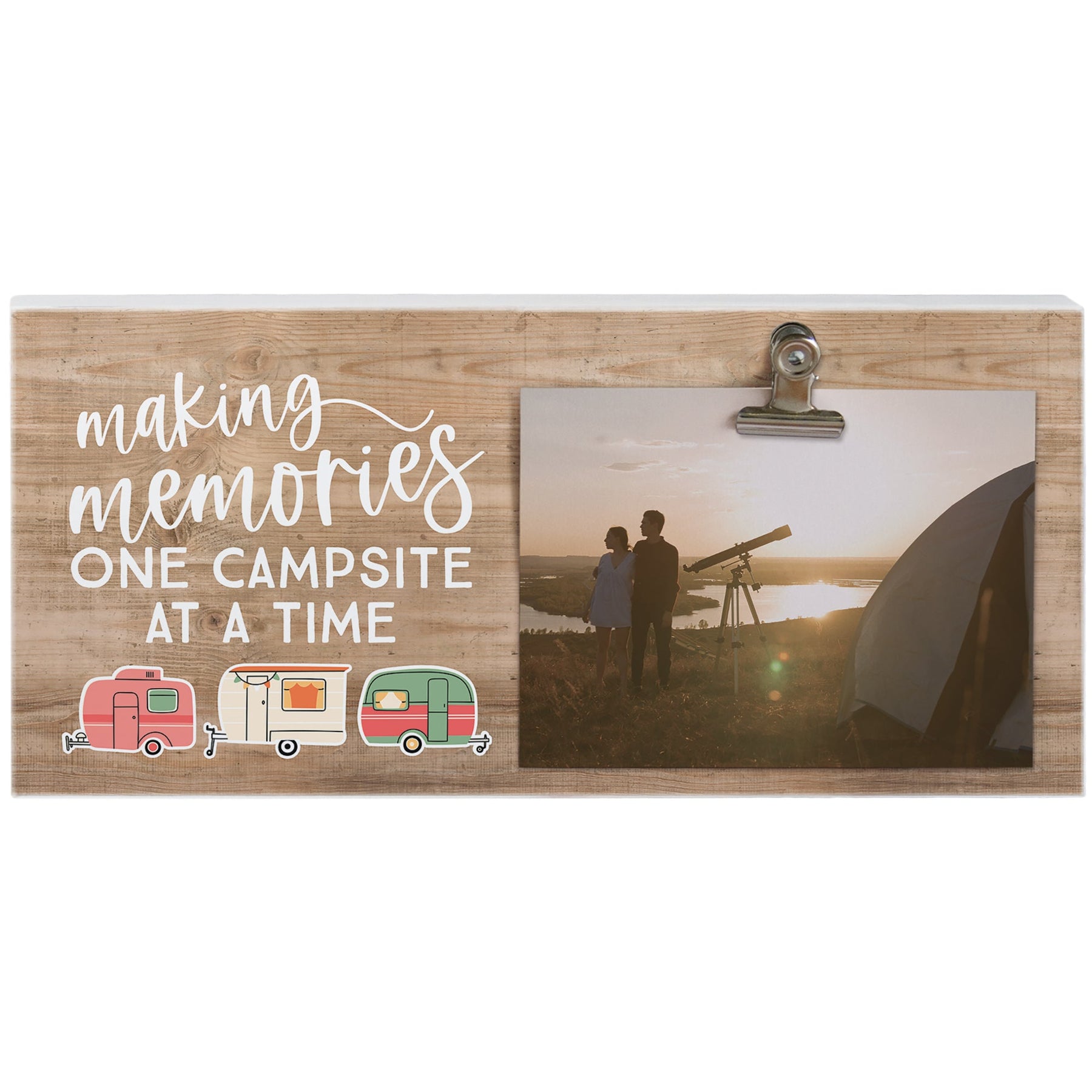 This piece is composed of high-end pine wood and a metal clip. A perfect way to showcase a favorite photo or inspirational message. Recommended photo size is 3” x 5”. Dimensions 5.5” x 12” x 1.25”. Product weight – 20 oz. Proudly designed, printed, and made in the USA by Sincere Surroundings.